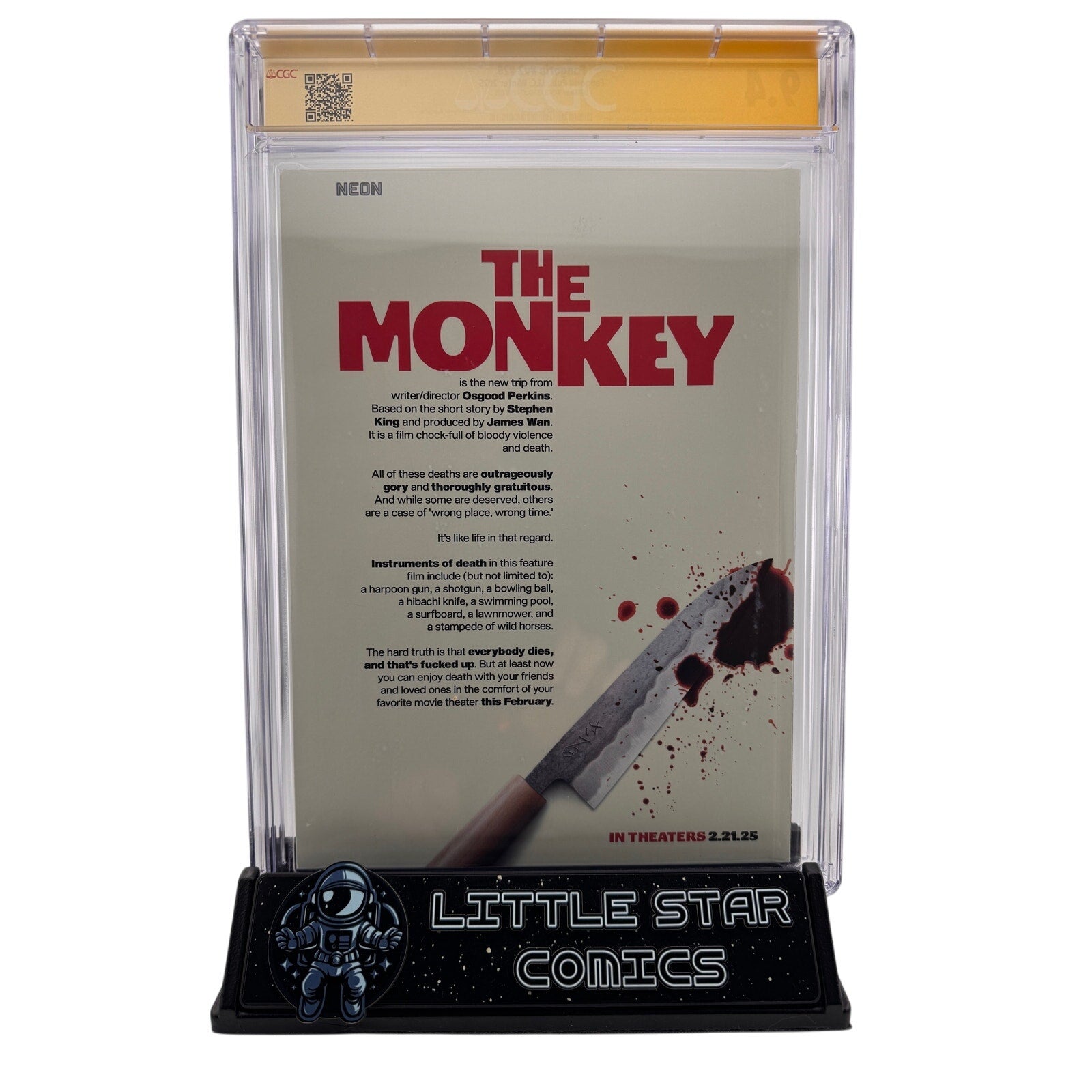 The back cover advertises The Monkey, a Stephen King adaptation from NEON studios, hitting theaters 2/21/25.