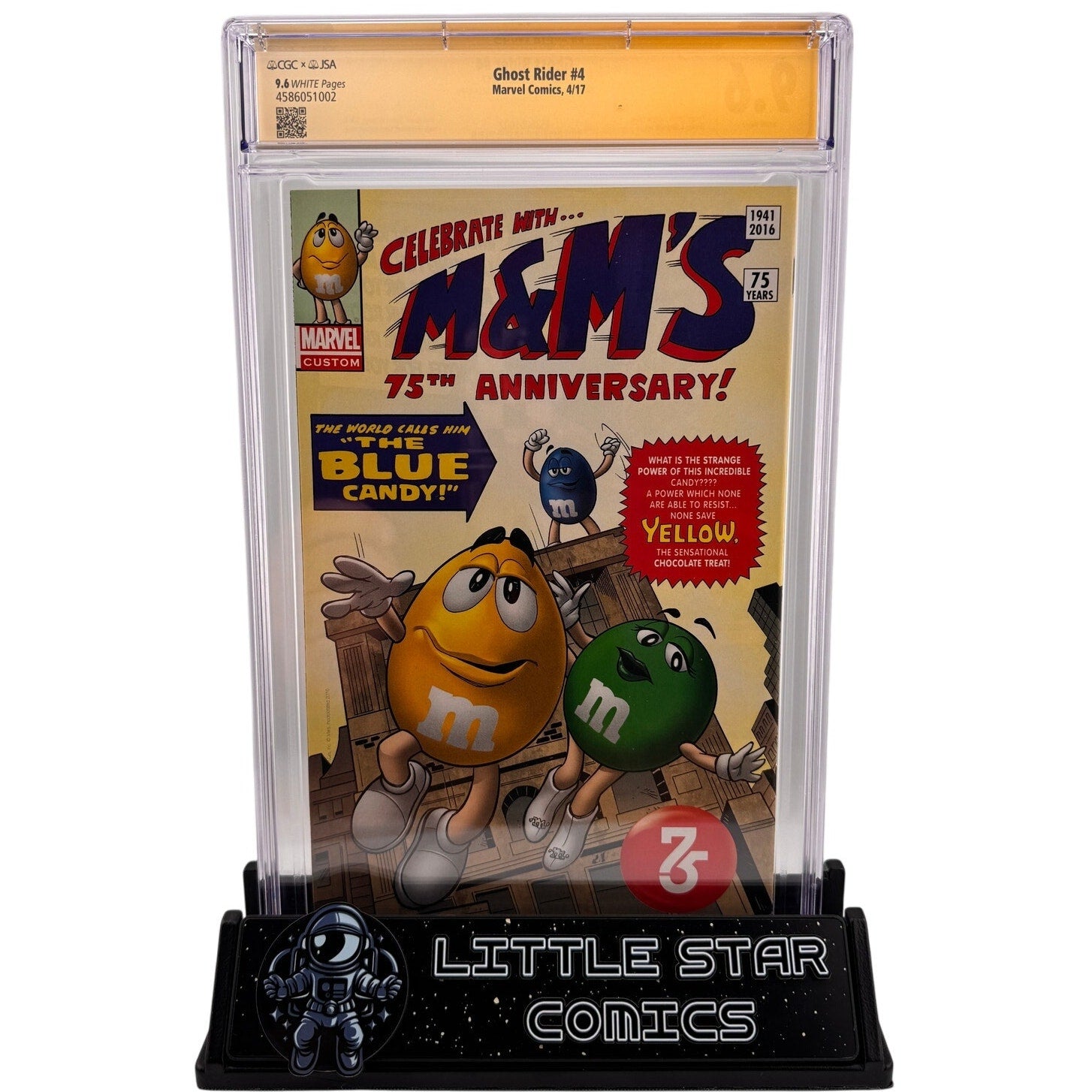 This explosive CGC x JSA 9.6 copy of Ghost Rider #4 (Marvel Comics, 04/2017) features high-octane cover art by Danilo S. Beyruth and white pages. Authenticated and signed by Gabriel Luna, the actor who portrayed Robbie Reyes in Marvel's Agents of S.H.I.E.L.D., this issue is an incredible collectorβs slab.