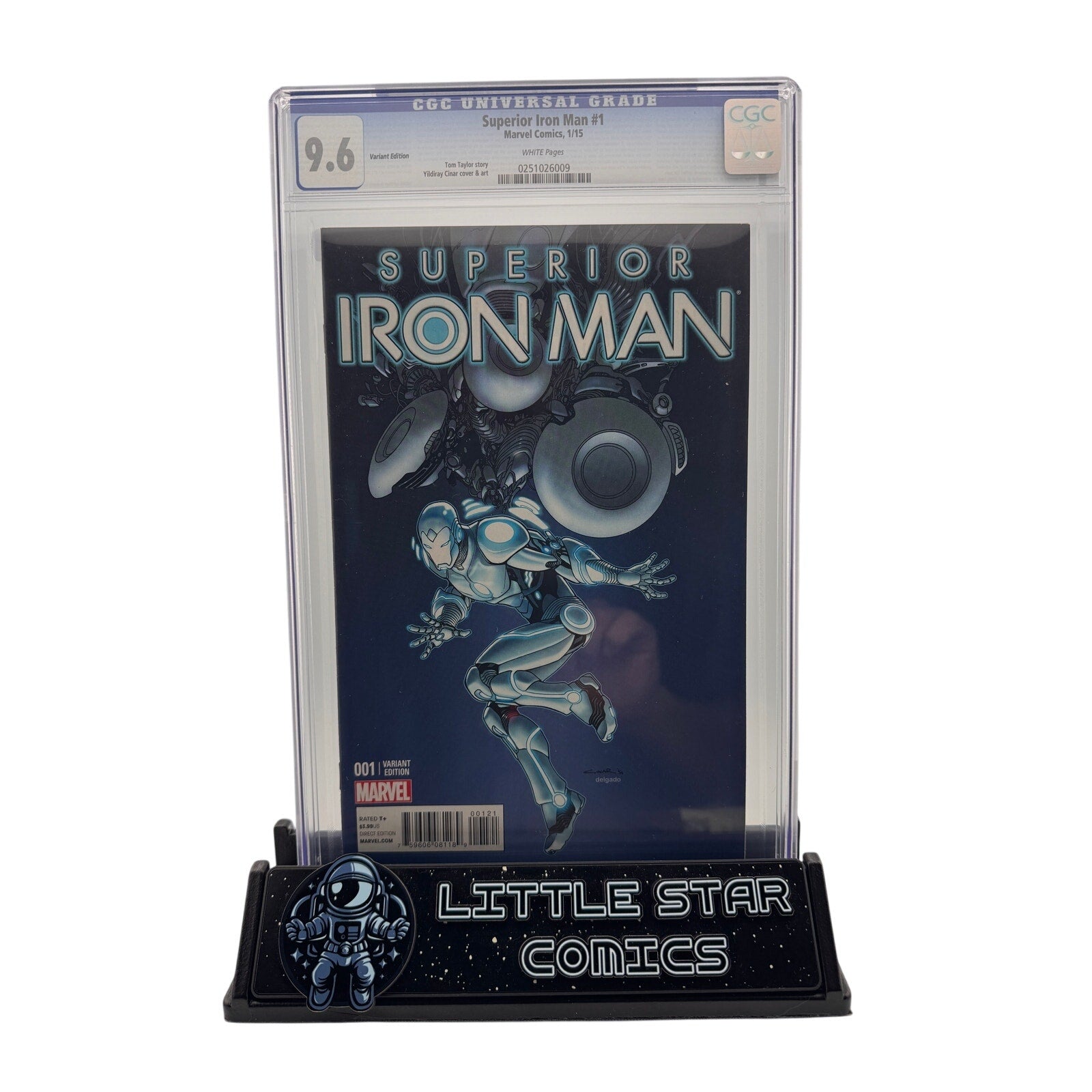 Presenting Superior Iron Man #1 from Marvel Comics, published in January 2015. This beautifully slabbed copy features a sleek, high-tech variant cover and interior art by Yildiray Cinar, encapsulated with a CGC Universal Grade of 9.6 and white pages.